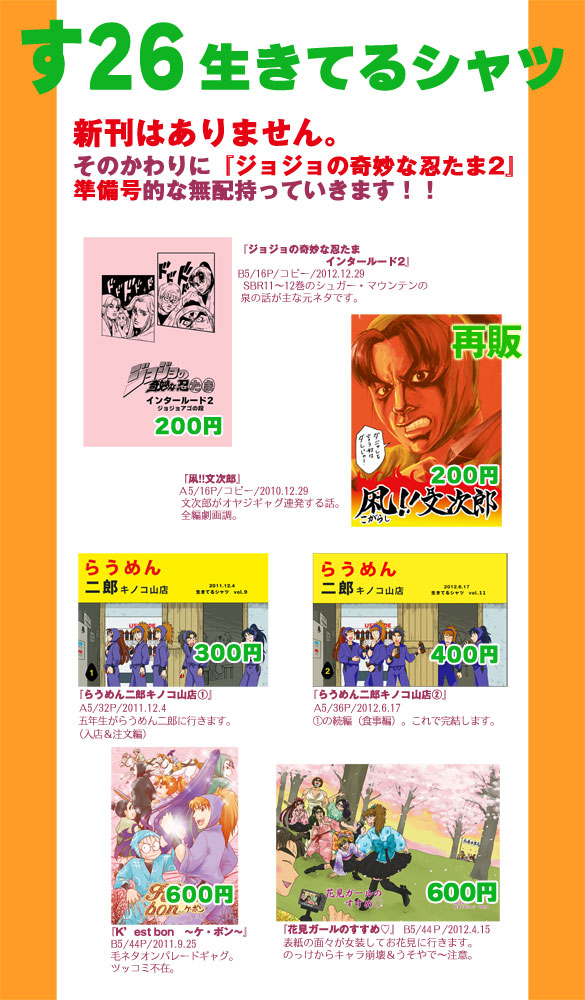 これなんですが、「ジョジョの奇妙な忍たま2」はコミケ(受かれば)にまわそうと思います。